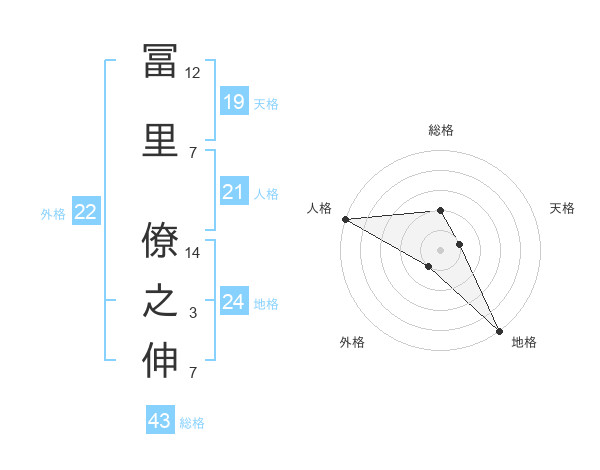冨里 僚之伸さんを姓名の画数から五運を鑑定