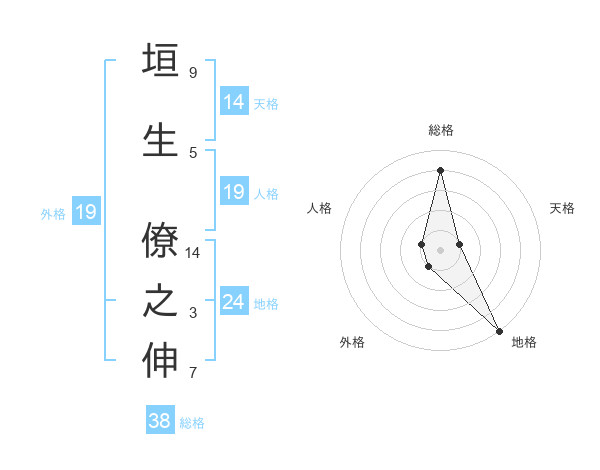 垣生 僚之伸さんの総格は38画の4点!