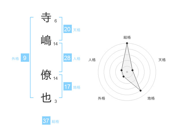 寺嶋 僚也さんの総格は37画の5点!