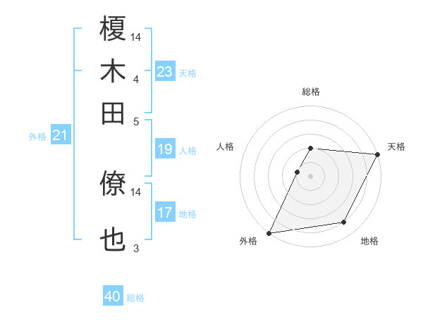 榎木田 僚也さんの天格は23画の5点!