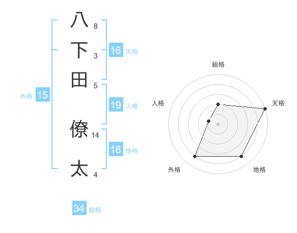 八下田 僚太さんの総格は34画の2点!