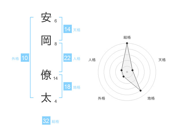 安岡 僚太さんを姓名の画数から五運を鑑定