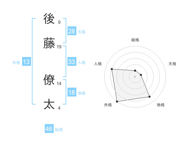 後藤 僚太さんの外格は13画の5点!
