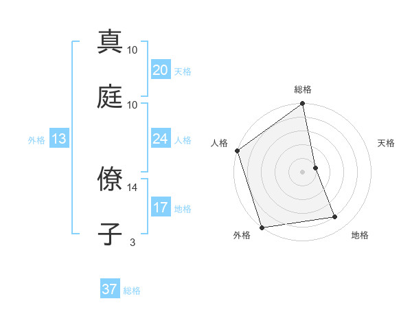 真庭 僚子さんを姓名の画数から五運を鑑定