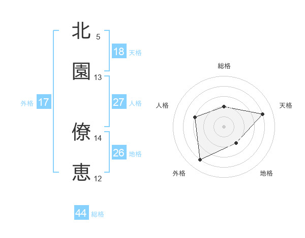 北園 僚恵さんを姓名の画数から五運を鑑定