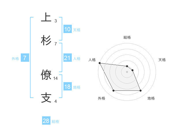上杉 僚支さんを姓名の画数から五運を鑑定