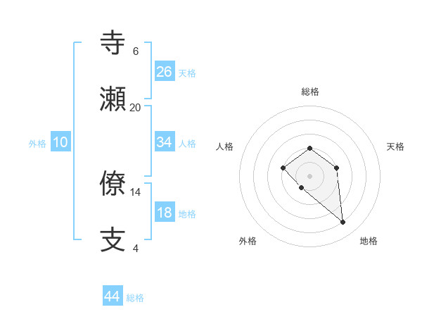 寺瀬 僚支さんの総格は44画の2点!