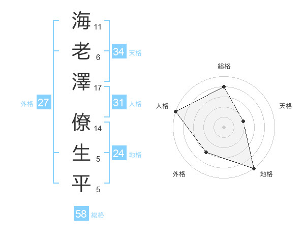 海老澤 僚生平さんを姓名の画数から五運を鑑定