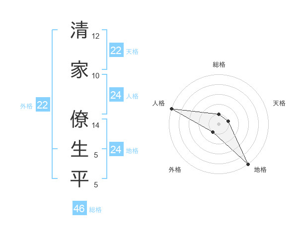 清家 僚生平さんの地格は24画の5点!