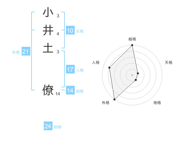 小井土 僚さんの外格は21画の5点!