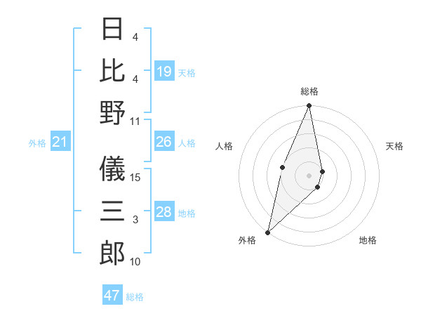 日比野 儀三郎さんを姓名の画数から五運を鑑定