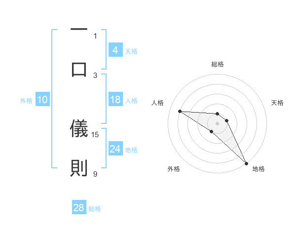 一口 儀則さんの地格は24画の5点!