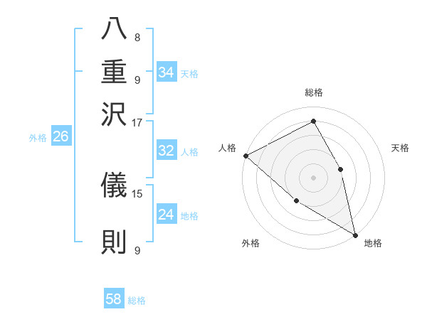 八重沢 儀則さんを姓名の画数から五運を鑑定