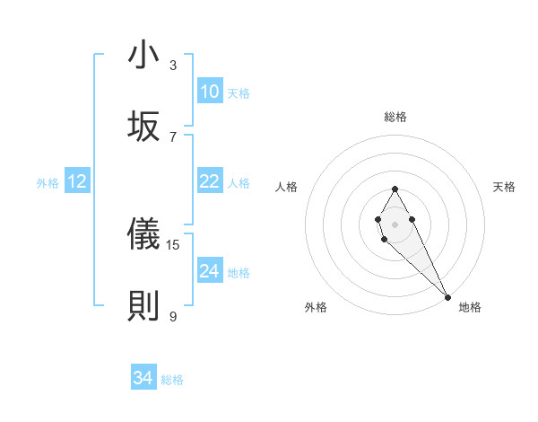 小坂 儀則さんの総格は34画の2点!