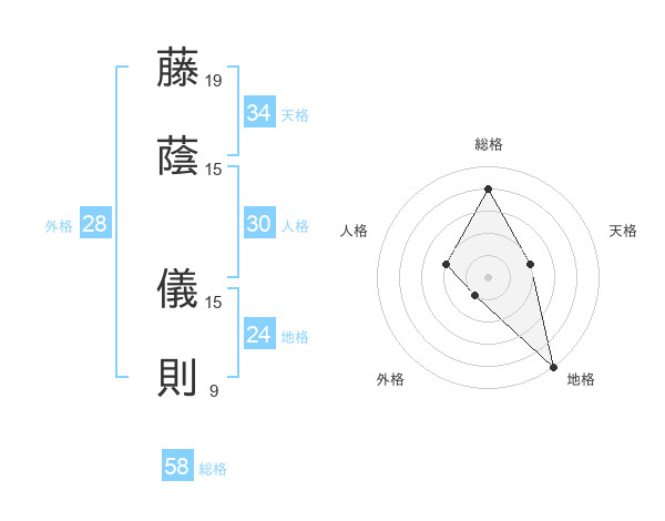 藤蔭 儀則さんの総格は58画の4点!