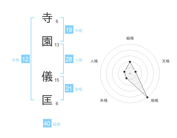 寺園 儀匡さんの総格は40画の2点!