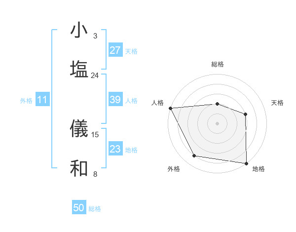 小塩 儀和さんの総格は50画の2点!