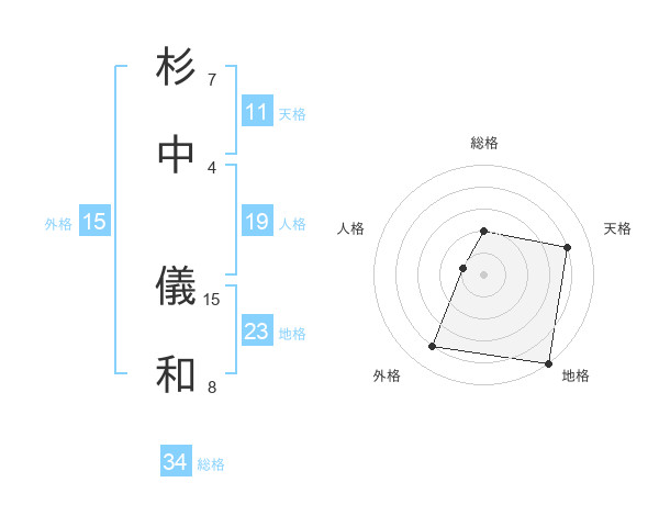 杉中 儀和さんの総格は34画の2点!