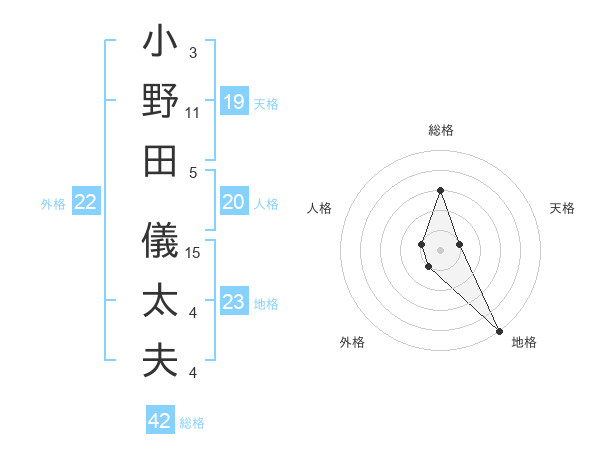 小野田 儀太夫さんを姓名の画数から五運を鑑定
