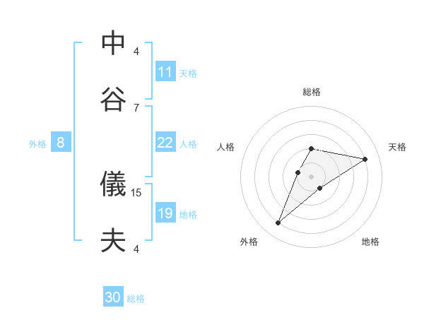 中谷 儀夫さんの天格は11画の4点!