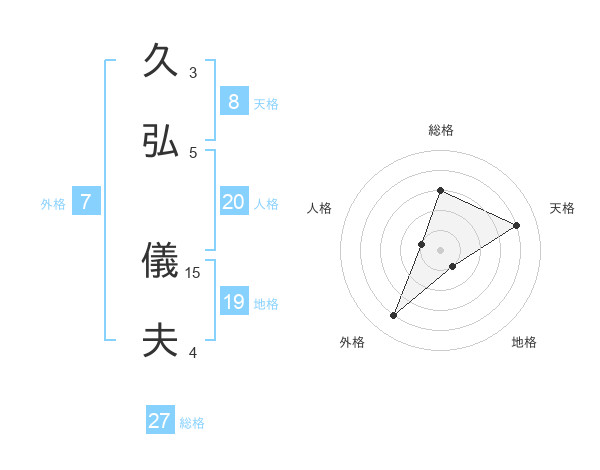 久弘 儀夫さんを姓名の画数から五運を鑑定