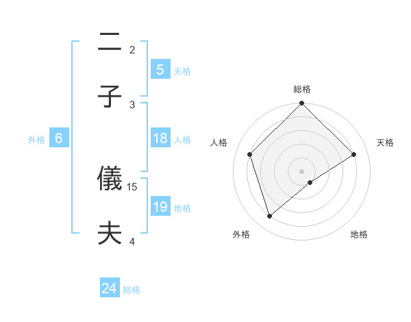 二子 儀夫さんを姓名の画数から五運を鑑定