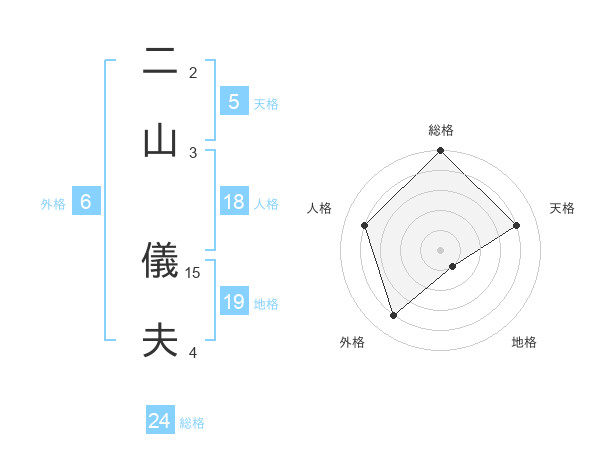 二山 儀夫さんを姓名の画数から五運を鑑定