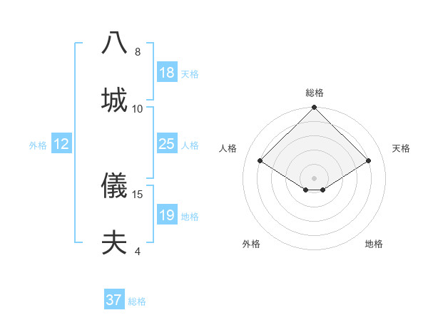 八城 儀夫さんの天格は18画の4点!