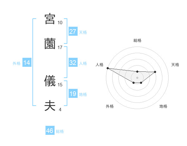 宮薗 儀夫さんの外格は14画の1点!