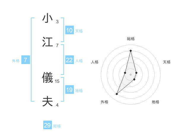 小江 儀夫さんの総格は29画の4点!