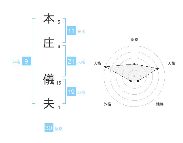 本庄 儀夫さんの天格は11画の4点!
