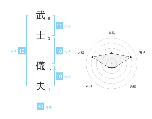 武士 儀夫さんの天格は11画の4点!