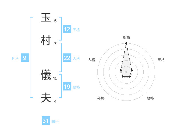 玉村 儀夫さんの総格は31画の5点!