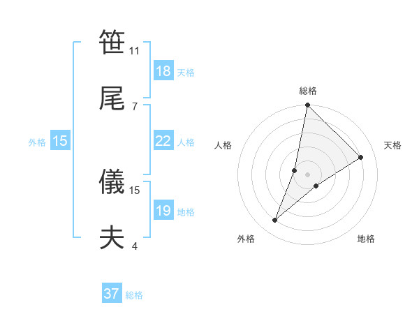 笹尾 儀夫さんを姓名の画数から五運を鑑定