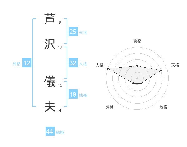 芦沢 儀夫さんを姓名の画数から五運を鑑定