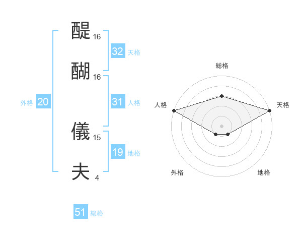 醍醐 儀夫さんを姓名の画数から五運を鑑定