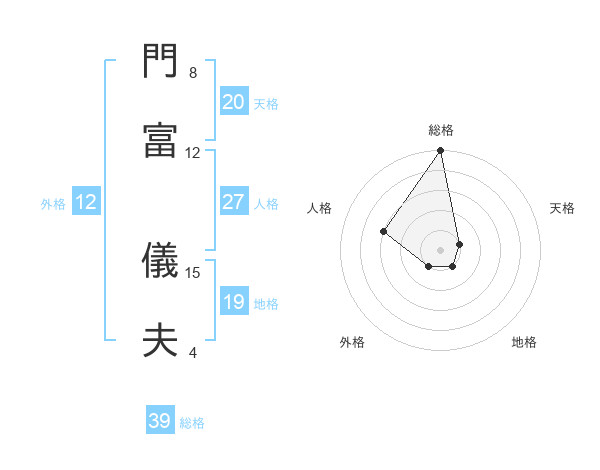 門富 儀夫さんの総格は39画の5点!