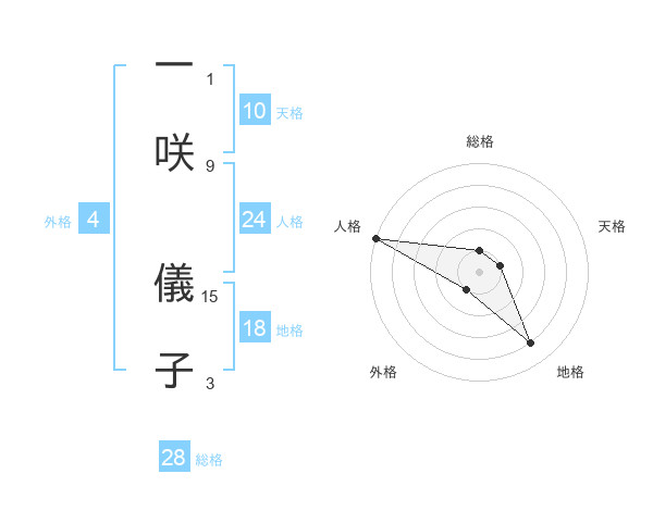 一咲 儀子さんの総格は28画の1点!
