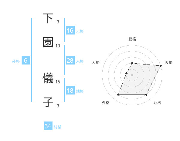 下園 儀子さんの天格は16画の5点!