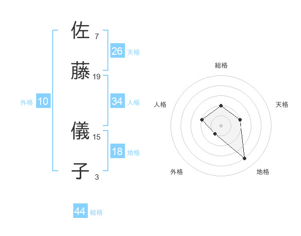 佐藤 儀子さんの総格は44画の2点!