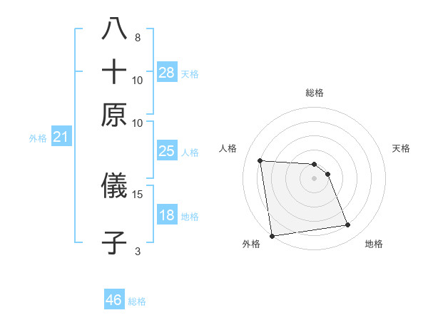 八十原 儀子さんを姓名の画数から五運を鑑定