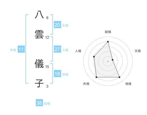八雲 儀子さんを姓名の画数から五運を鑑定