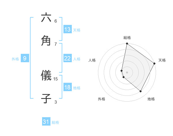 六角 儀子さんの総格は31画の5点!