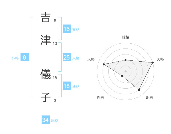 吉津 儀子さんの天格は16画の5点!