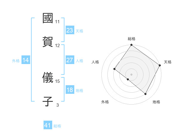 國賀 儀子さんを姓名の画数から五運を鑑定