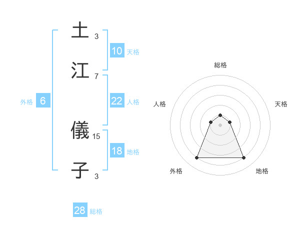 土江 儀子さんの総格は28画の1点!