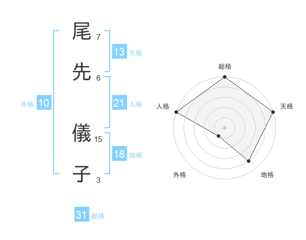 尾先 儀子さんの総格は31画の5点!