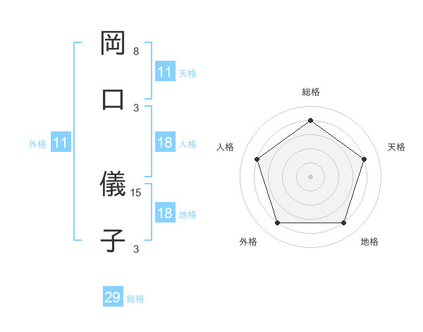 岡口 儀子さんを姓名の画数から五運を鑑定