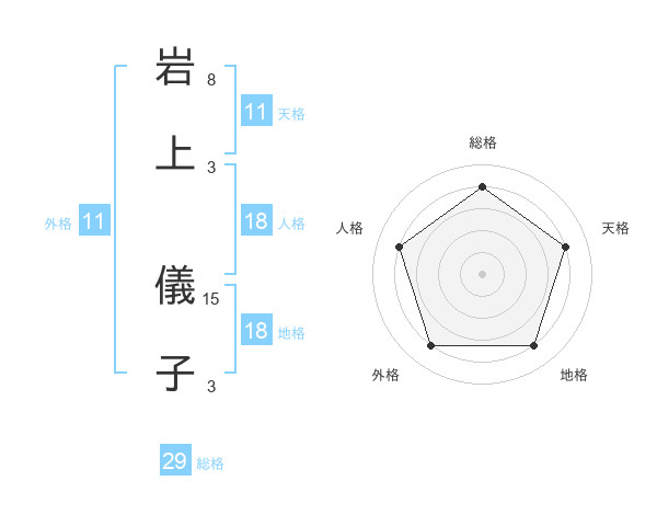 岩上 儀子さんを姓名の画数から五運を鑑定