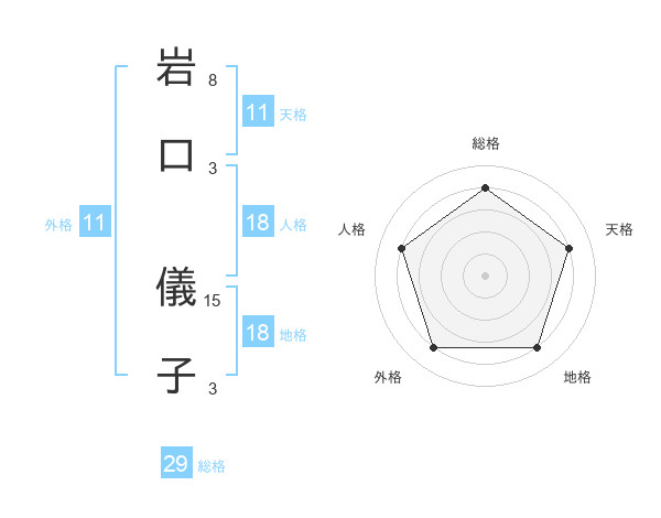 岩口 儀子さんの総格は29画の4点!